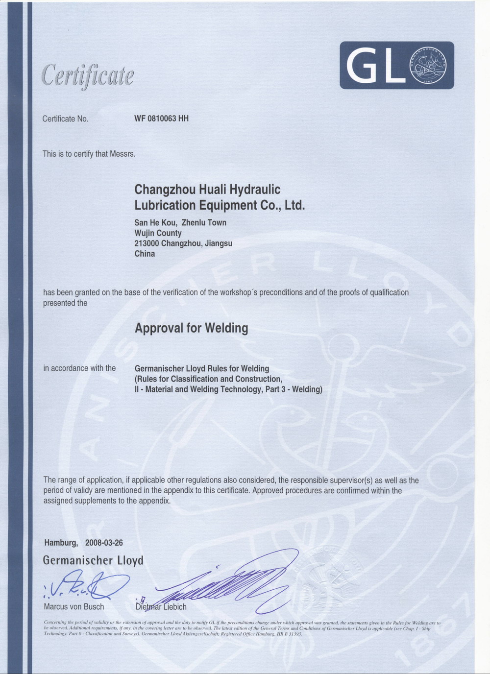 GL Measurement certificate